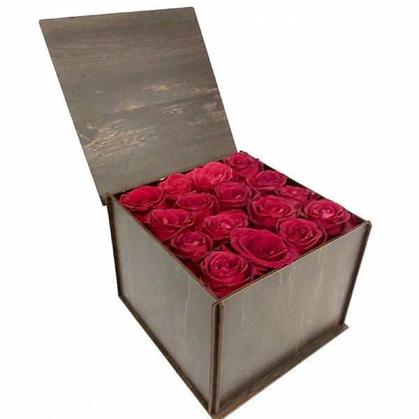 Ahşap Kutuda 16 Kırmızı Gül