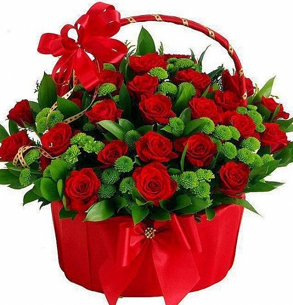 Sepette 25 Kirmizi Gül ve Yesil Krizantemler